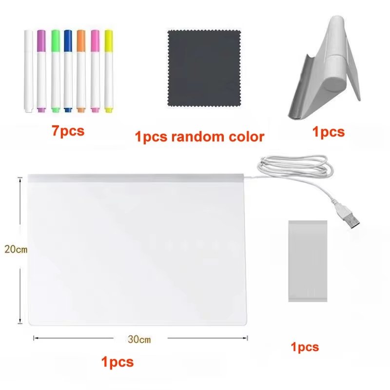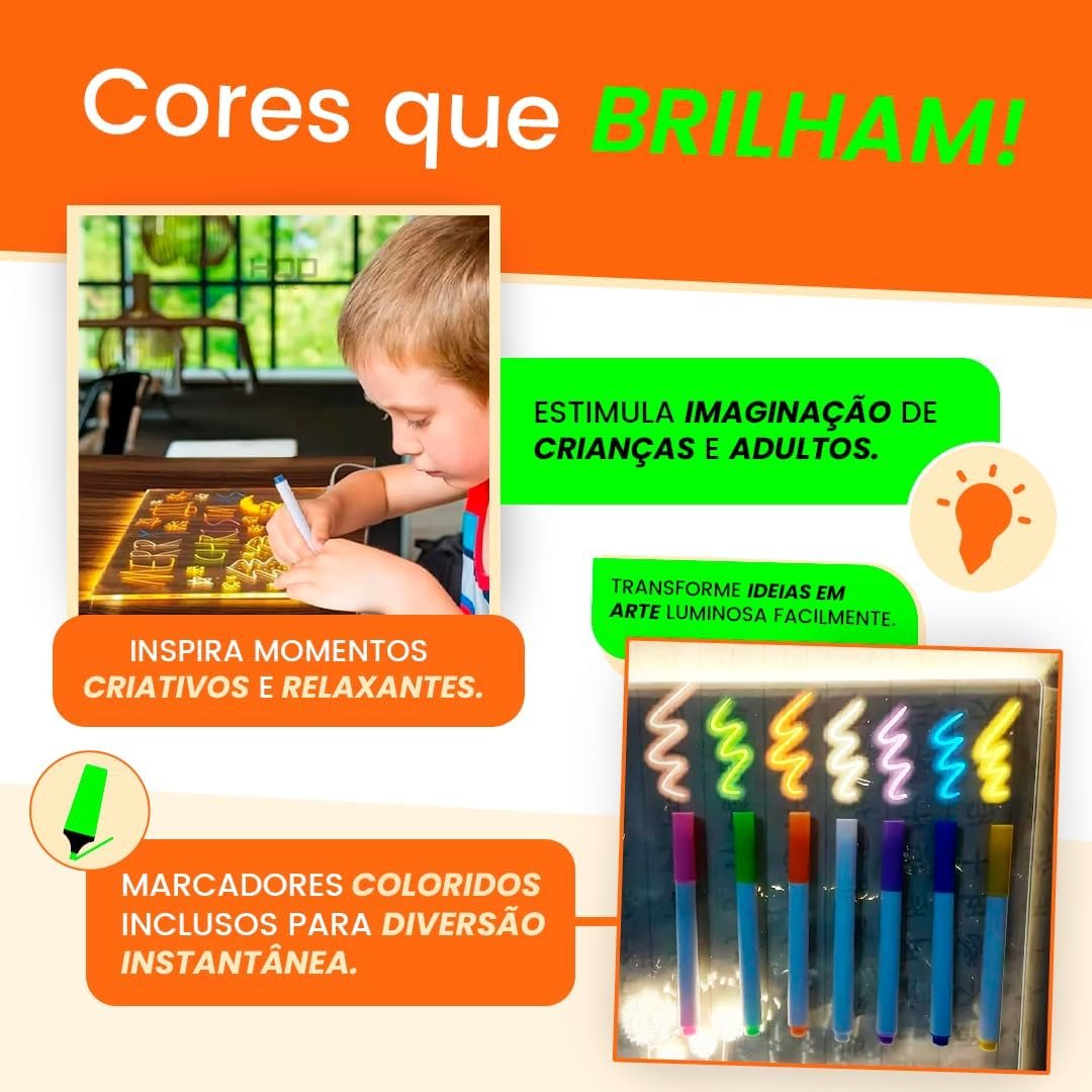 Quadro Mágico LED Infantil para Escrever Desenhar Colorir Regravável USB com Canetas Tamanho Grande