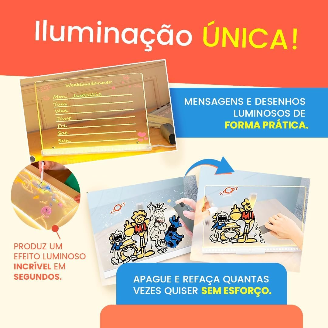 Quadro Mágico LED Infantil para Escrever e Desenhar